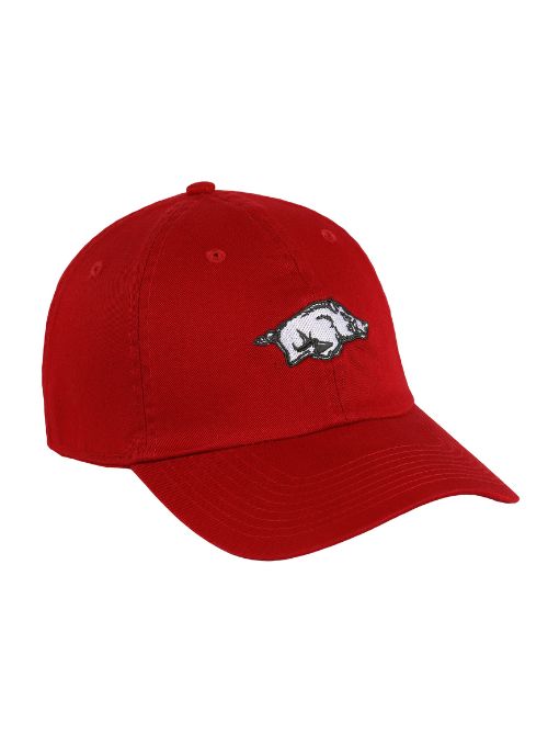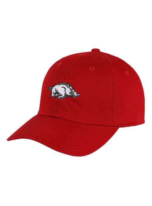 Wooo. Pig. This relaxed fit cap features the official Arkansas Razorbacks logo on the front. Adjustable cloth strap with nickel snap buckle closure.
