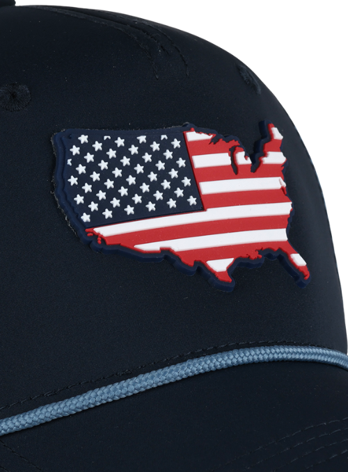 Show your pride in this one-of-a-kind rope cap, featuring bold PVP rubber-raised ornamentation of the American flag on the front. The back showcases a custom patriotic print and the words “We the People”—a tribute to the American spirit.