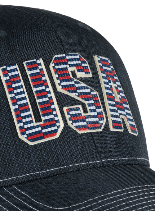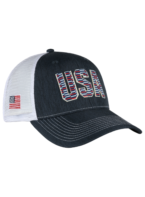 Make a bold impression with this Ahead original. Featuring our innovative PxlPoint ornamentation, this classic mesh back cap reimagines “USA” in a dynamic, molded design. The pixelated letters, finished in a sleek semi-gloss, add depth, texture, and unmistakable pride.